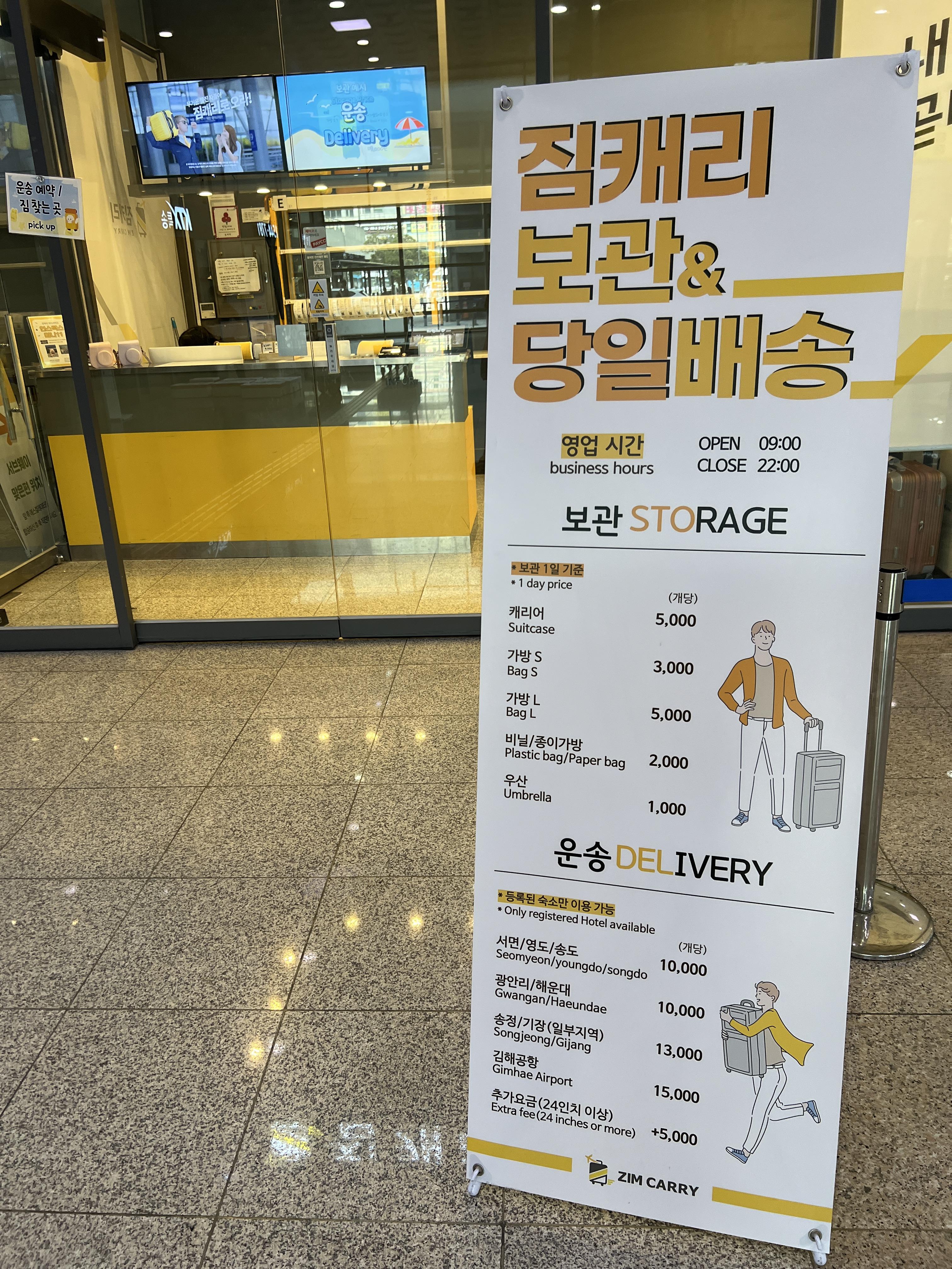 부산역에 도착하니 짐캐리, 보관&당일 배송 서비스가 있어서 열차에서 내려서 바로 짐을 숙소(등록된 곳만 가능)또는 공항등으로 운송도 해준다고 합니다. 정말 편리하죠? 부산역에 가실 일이 있으시면 참조하시면 좋을 것 같아요.